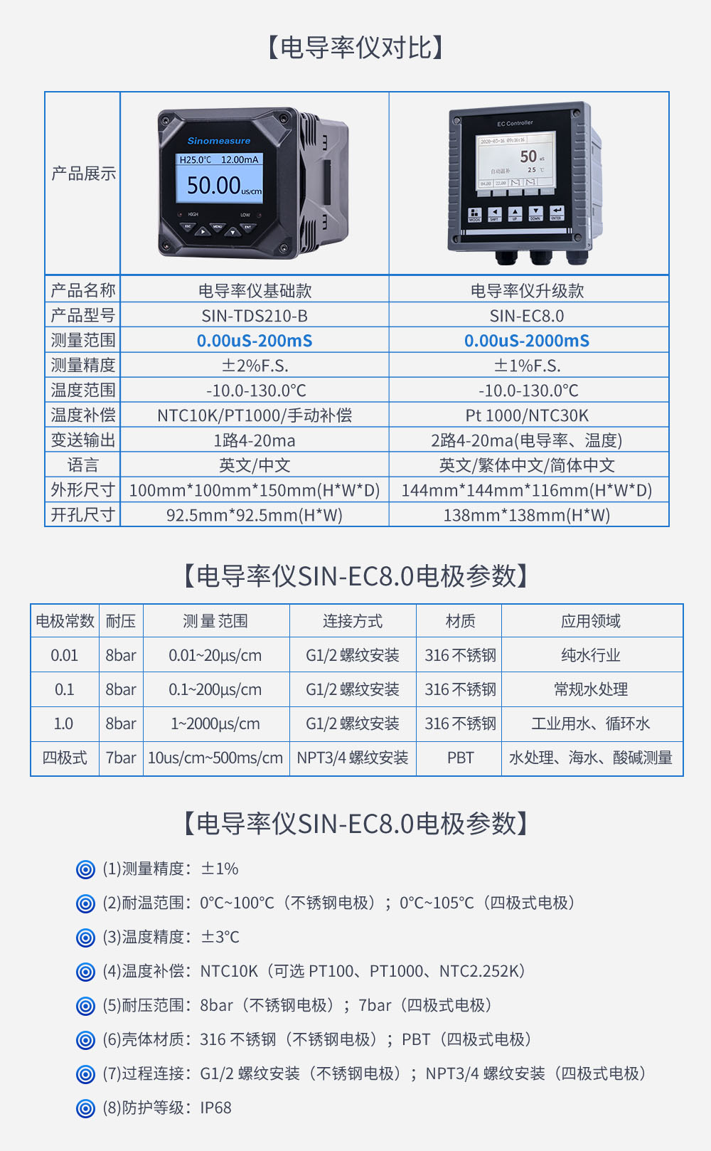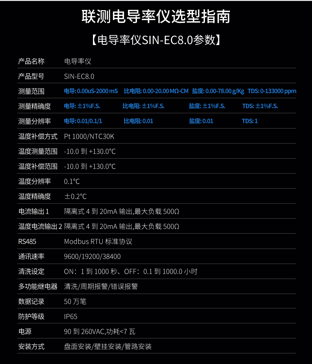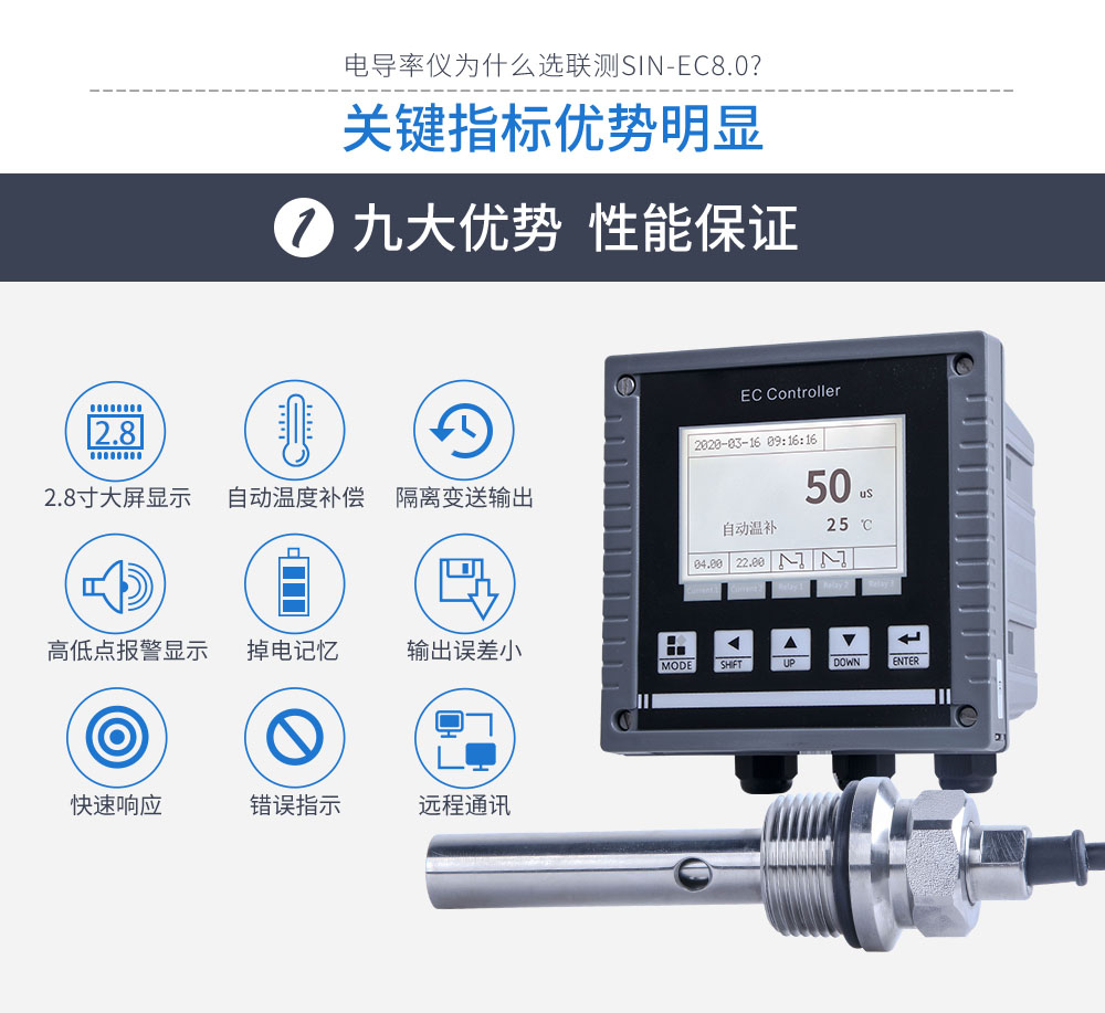 聯測_SIN-EC8.0在線電導率儀_RO過程_水處理_CIP清洗_海水淡化類別:EC/電導率儀