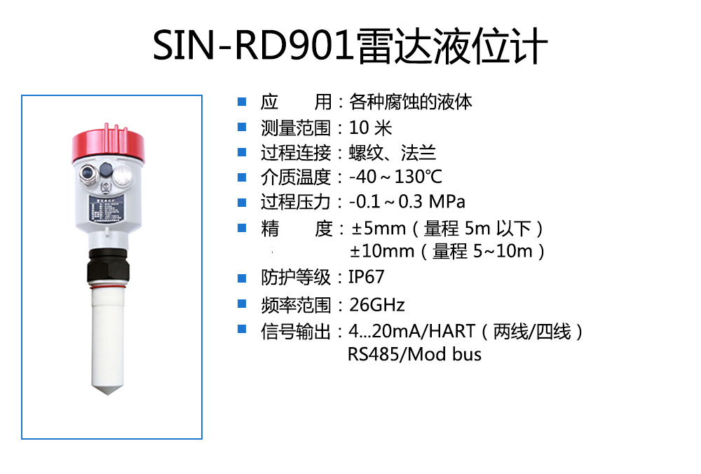 您的位置:首頁 > 雷達液位計 → 聯(lián)測_SIN-RD901雷達液位計_適用于各種腐蝕的液體_