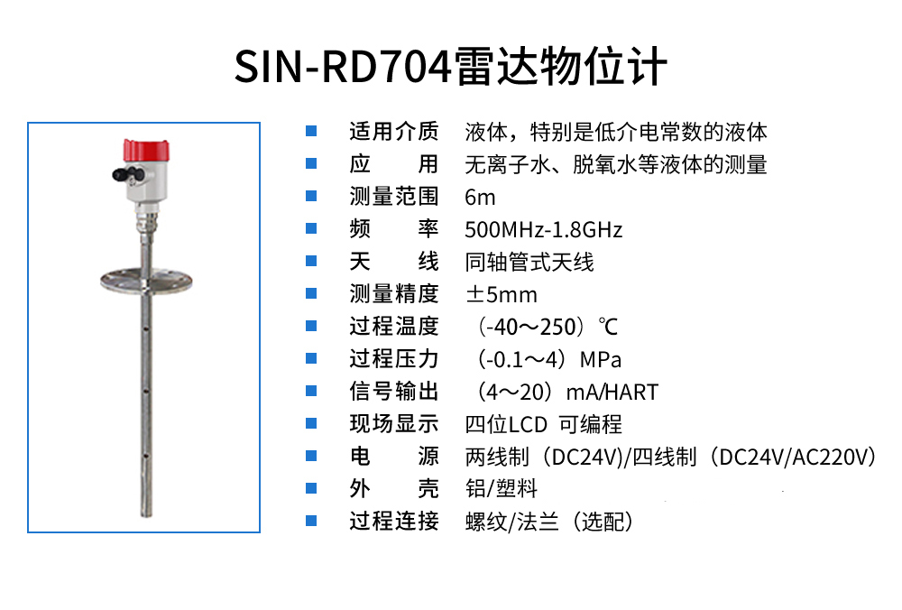 聯測_SIN-RD704雷達液位計_適用于無離子水、脫氧水等液體_類別:雷達液位計