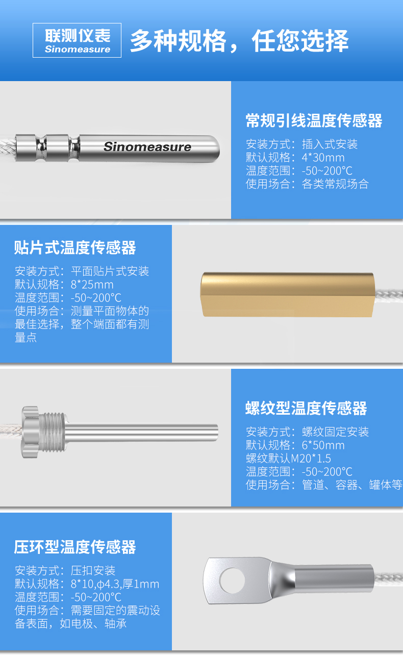 簡介:聯測溫度傳感器可以直接測量各種生產過程中液體,蒸汽和氣體介質以及固體表面的溫度,通常和顯示儀表、記錄儀表等配套使用。